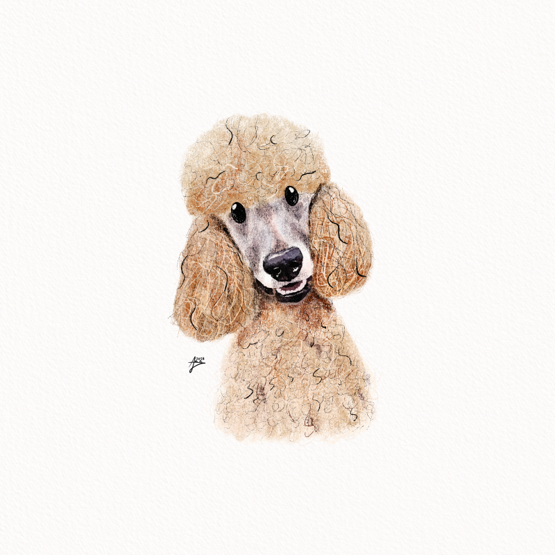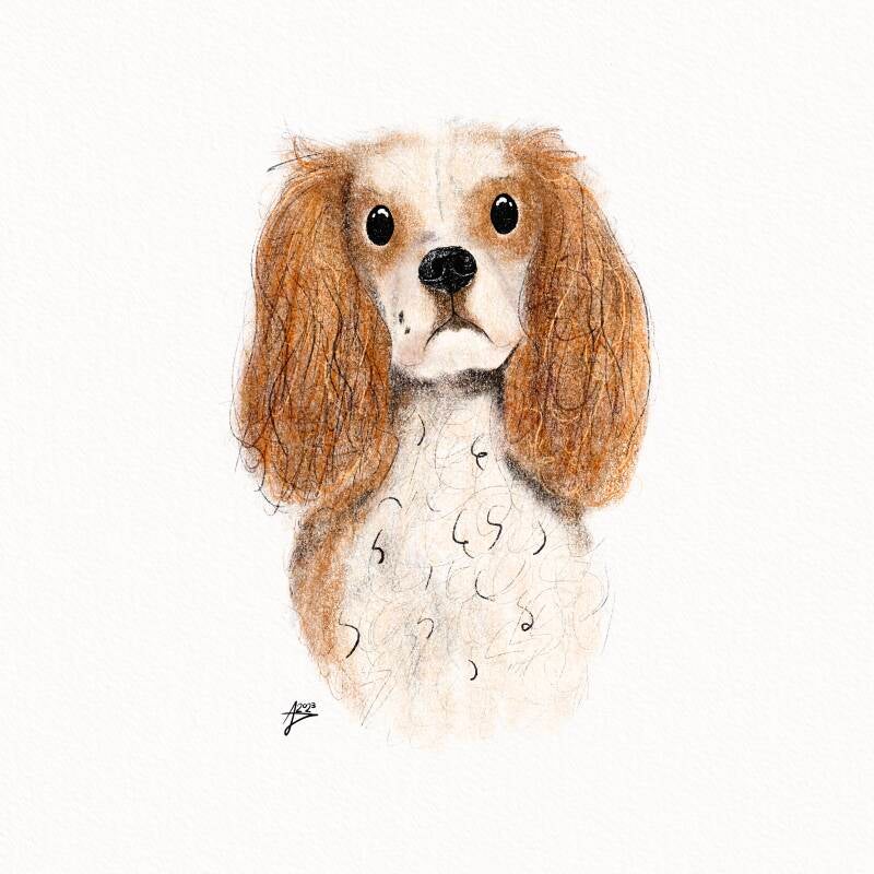 The pencil portraits will be made with digital pencil brushes to create this beautiful pencil drawing effect. It will mimic the grainy texture of a pencil, gradual toning variation and give extra details in the fur to enhance realism. This portrait will be made on the watercolour canvas to let the colours pop and to create the realistic pencil effect even more.