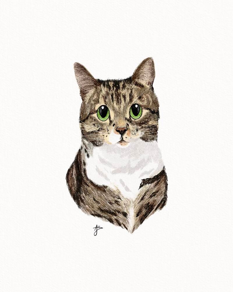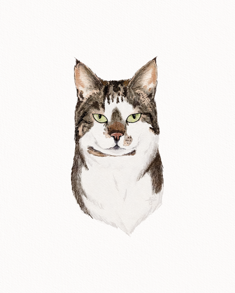 This portrait will be delivered as an unique A6 art print, printed together with my postcard rounds on beautiful Tinteresso Gesso paper. It's optional to add a digital file. You will then receive a 4000 x 5000 px PDF and PNG file